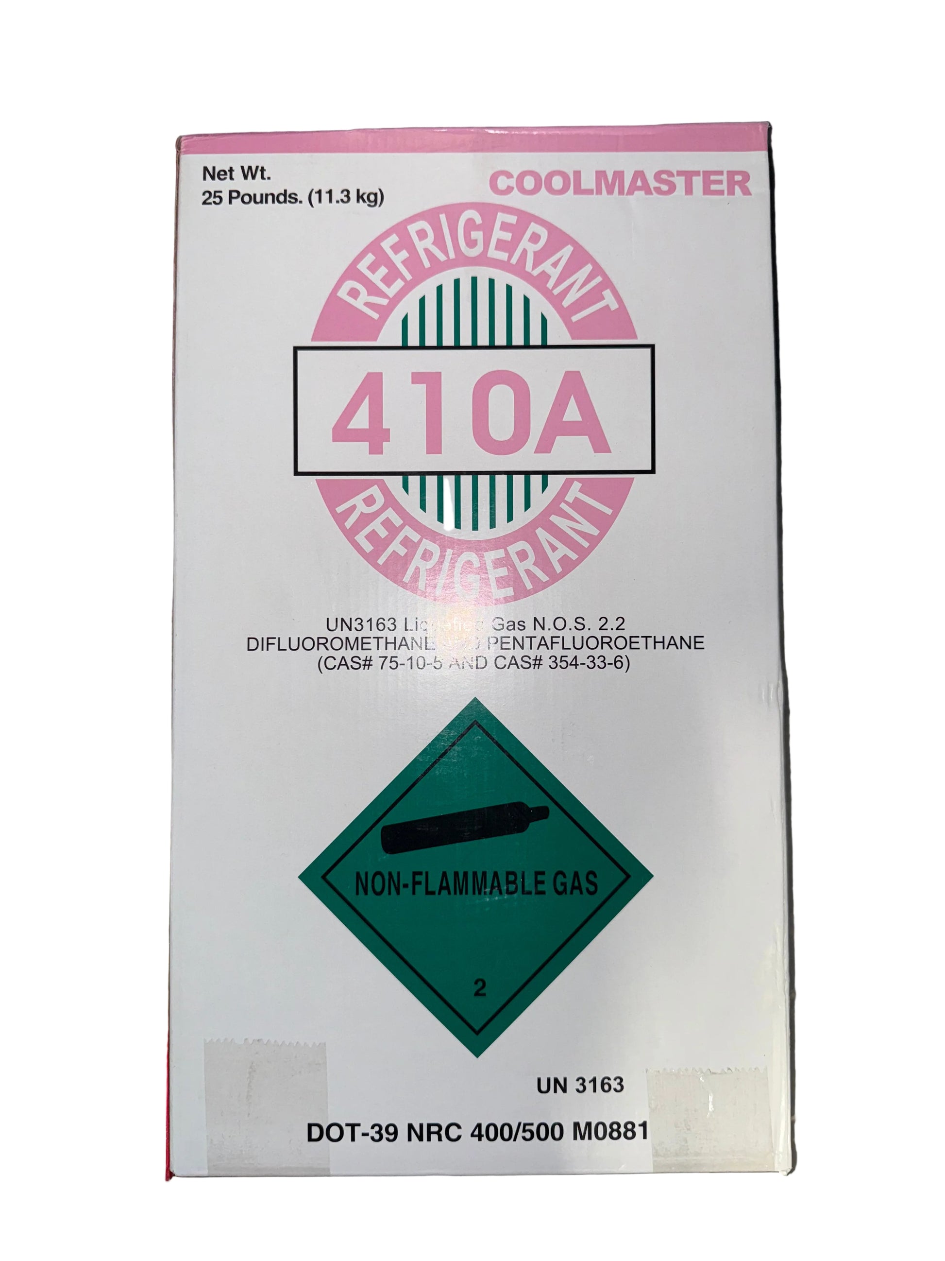 A blend of R-32 and R-125 that nearly forms an azeotrope, which means it has extremely low temperature glide and almost no fractionation potential. This blend has about 60% higher pressure than R-22 in air conditioning applications, and therefore should be used only in new equipment specifically designed to handle the pressure. Systems designed for R-410A will have smaller components (heat exchangers, compressor, etc.) to perform the same cooling job compared to R-22. R-410A will require POE lubricants. Retrofitting R-22 equipment is not recommended under any circumstances.